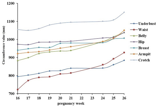 In addition, all research works confirm that there is an evident change in the physical appearance of a woman’s body during the maternity period. According to the fact that a woman’s body undergoes significant changes during nine months of pregnancy, characterization of these changes has been analyzed by a few publications [25,26,27]. New clothing design for women during pregnancy was proposed [28]. Clothing patterns were prepared in accordance with physical comfort for a pregnant woman. It was said that four types of changes i.e., shape, dimensions, weight, and body posture have an influence on the pattern design. A connection was established between the woman’s size before pregnancy and during the last month of pregnancy. The limitation is that body evolution was not taken into account during the pregnancy period since the focus was just on the last month of pregnancy. In another study, the critical design aspects of maternity support garments were reviewed [29]. It was believed that the improvement of pregnancy garments for the modern plus-size patterns should be a response to the growing obesity as well as beauty standards.
