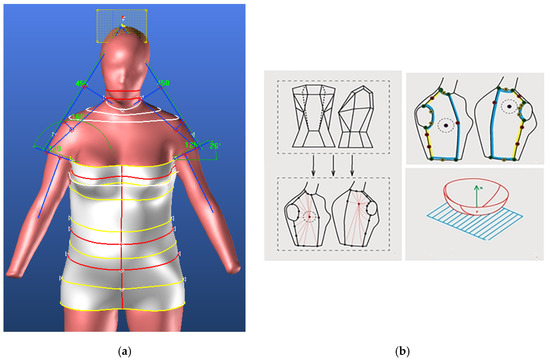(a) The anthropometric feature points and (b) general principle of the garment block pattern design [41].