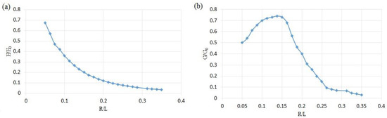 The normalized modulus of SP unit cells at different R/L: (a) normalized elastic modulus, (b) normalized shear modulus.
