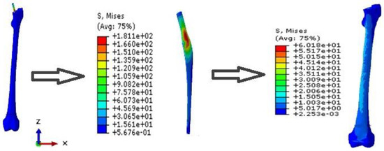 After validation, the UP and the bone are investigated to better understand the stress distribution in both, and they will be compared with porous FG implants and their bones in the next sections (see Figure 11). Beside the stress distribution, two paths on the prosthesis are implemented to precisely detect the variation of the stress in the implant (see Figure 7).