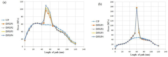 The stress distribution in two paths in the DFGPs: (a) Path P1, (b) Path P2.