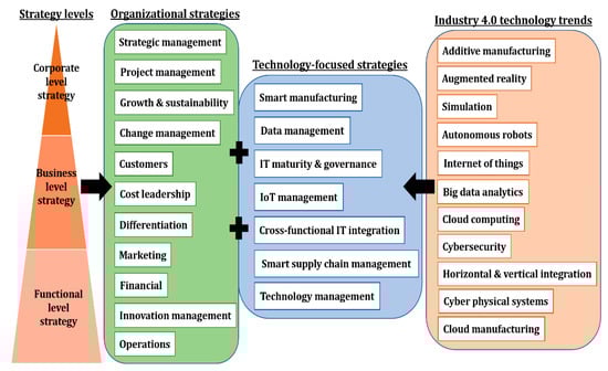 - Agrawal, A.; Schaefer, S.; Funke, T. Incorporating Industry 4.0 in Corporate Strategy. In Analyzing the Impacts of Industry 4.0 in Modern Business Environments; IGI global: Hershey, PA, USA, 2018; pp. 161–176. [Google Scholar]