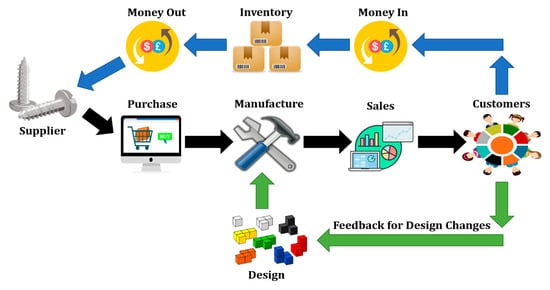 They serve an extremely useful purpose by providing a visual representation of a product or process, and showing the effects of different conditions in a virtual environment. They not only save costs by optimizing the geometry or process flow features, but can also predict future states based on different mathematical models. Simulations can be used for a product, process, or process flow, and there are several software packages available for them. Products and manufacturing processes are normally simulated based on the finite element method, finite volume method, and discrete element method. Software packages capable of using such methods include CAEplex, MATLAB, Ansys, OpenFOAM, and EMS. On the other hand, manufacturing-process-flow simulation packages are based on various modeling paradigms, including process-centric, systems dynamics, Petri net, Monte Carlo simulations, and agent-based. These packages include, but are not limited to, WITNESS, AnyLogic, FlexSim, Simio, and Simul8 Professional. They can provide animated and interactive models to replicate the operation of an existing or proposed production facility. They can help solve common manufacturing challenges that include assessing the impact of investment, production planning, optimization, and scheduling, facility designing, manufacturing capability planning, bottleneck analysis, and resource allocation [59,60,61].