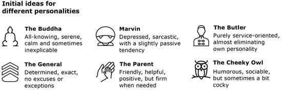 - Nass, C.; Moon, Y.; Fogg, B.J.; Reeves, B.; Dryer, C. Can computer personalities be human personalities? Int. J. Hum. Comput. Stud. 1995, 43, 223–239. [Google Scholar] [CrossRef]
