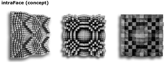 - A schematic representation of a “face” of the room intelligence, realized through fixed or mobile screens or also through a grid of movable cylinders as a shape display integrated in the wall that may form a 3D representation of the face (also known as “intraFace”, see Figure 2).