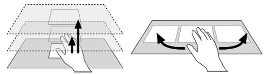 Advancement in science and technology has provided some tools for making image boards, which has prioritize replacing traditional manual image board production with e-webpage platforms. For example, Lucero and Dima proposed an approach for developing an image board using the MR system [18], which provided the required technology and system concepts to construct a tailored image browser, and also provided designers with an interaction platform for making the image board. To use this system, first, designers were required to collect many image pictures themselves. The system provided the functions of downloading pictures from the Internet and scanning paper pictures to assist building the designers’ personal picture database. Designers could use their hands comfortably and flexibly to grab physical images (Figure 1) to make image boards in the design studio environment. This e-webpage platform mainly solved the problem of office chaos caused by handmade image boards and provided an electronic picture database that reduced the problem of taking up a lot of space with paper pictures [19]. However, the picture collecting, positioning, grouping, naming, and image board constructing with this e-webpage platform still involved designers doing so according to their personal views. Its objectiveness was not verified, and the collected pictures could not necessarily meet the users’ needs. At the same time, the platform was only suitable for a single user instead of a transdisciplinary joint design team.