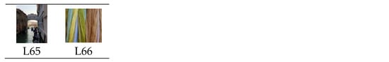 Among the 16 recommended pictures by the analysis of averaged SD assessments (as shown in Figure 5 and Figure 6), which also included all 13 recommended pictures by GRA, five pictures were selected from the 16 designers’ proposed pictures (L1–L16) and 12 pictures selected from the 50 proposed pictures by LOHAS representatives (L17–L66). The rate of designers’ proposed pictures selected was 0.31 (5/16) as compared with that of the LOHAS representatives with the value of 0.22 (11/50), therefore, we conclude that the proposed pictures by designers are more suitable for expressing the LOHAS image than those by LOHAS representatives. However, if we examine the nine most recommended pictures by GRA (as shown in Figure 7), which are also e most recommended by the analysis of average value, we find two pictures are from the proposed pictures by the designers, whereas seven pictures are from those by the LOHAS representatives. The selecting rate of proposed pictures by designers 0.125 (2/16) is slightly smaller that of the LOHAS representatives with the value of 0.14 (7/50). Thus, both proposed pictures by designers and by LOHAS representatives can be equally effective for retrieving pictures to express the LOHAS image on an image board.