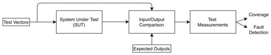 - Ferrandi, F.; Fummi, F.; Sciuto, D. Implicit test generation for behavioral VHDL models. In Proceedings of the International Test Conference 1998 (IEEE Cat. No. 98CH36270), Washington, DC, USA, 18–23 October 1998; pp. 587–596. [Google Scholar]