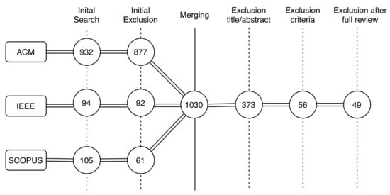 - Brereton, P.; Kitchenham, B.A.; Budgen, D.; Turner, M.; Khalil, M. Lessons from applying the systematic literature review process within the software engineering domain. J. Syst. Softw. 2007, 80, 571–583. [Google Scholar] [CrossRef]