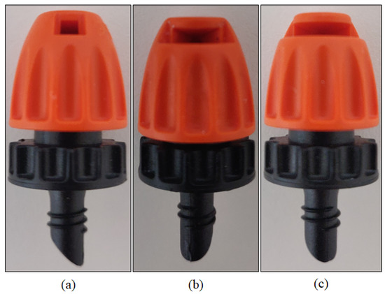 Figure 4 and initially designed for irrigation purpose are selected and tested among hundreds of market-available sprinklers. These types of nozzles are readily available on the market and manufactured in plastic according to the highest manufacturing standards despite the low cost. Another interesting feature of the selected nozzles is the dependency between the sprayed water mass flow rate and the inlet pressure. For each nozzle type, the manufacturer provides the water mass flow rate vs. inlet pressure characteristic curve. Therefore, regulating the nozzle inlet pressure allows spraying different water mass flow; a fact that guarantees selecting the most suitable flow rate without changing the cooling system layout. The design sprayed flow rates are given in