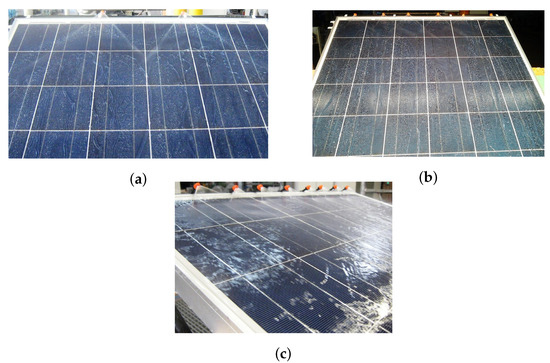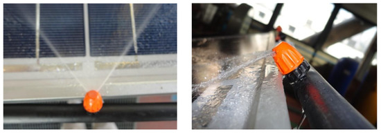 Figure 8. In this manner, the sprayed water flows from the top to the bottom of the module surface by gravity and independently the panel tilt angle. Note that, water allows to cool down the surface not only directly but also because of its evaporation. Besides, the water flow guarantees to clean the module surface from dust favoring the self-cleaning mechanism.