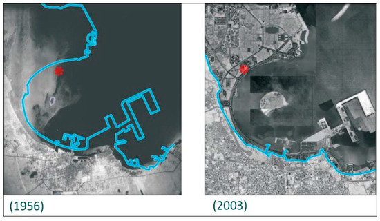 The Doha waterline in 1956 and 2003 (Source: Wiedmann, F., et al. Adapted from [29]).