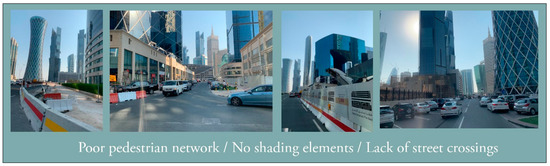 The authors would like to acknowledge the support of Qatar University in providing a work environment which facilitates and motivates scientific research. This research study was developed as a part of the core course “Participatory Design and Planning” in Fall 2020, part of the PhD program in Architecture at Qatar University. The authors would like to thank the leading engineers and key professional people working in governmental agencies and municipalities in Qatar, specifically those in the Ministry of Municipality and Environment (MME), the Ministry of Transport and Communications (MOTC), Qatar Rail, Mowasalat, and the Ashghal Public Works Authority. Their cooperation and collaboration with the authors were crucial in the development of this research study. This included meetings; the provision of visual materials, guidelines and frameworks; and discussion of future plans. Finally, the authors would like to thank the reviewers and editors for their invaluable feedback. The authors are solely responsible for the statements made herein.