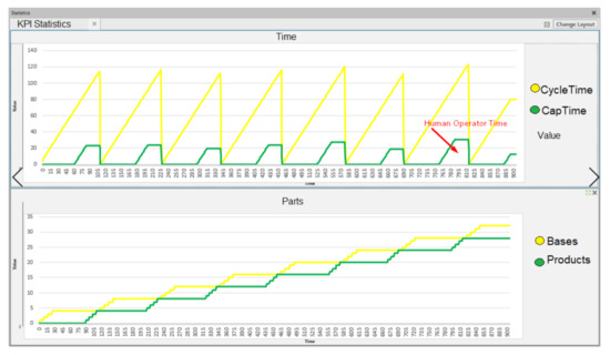 The second task, Assembly, is related to responding to requests for collaboration from the robot, which are indicated by the green light of the beacon in the area of assembly. The time that the human takes to place caps, defined as Wait Time and Cycle time, are recorded in a data table as Table A2, jointly with figures for Task 1 when the operator is in the scenario 2. In the assembly task, the activities of the participant, are: