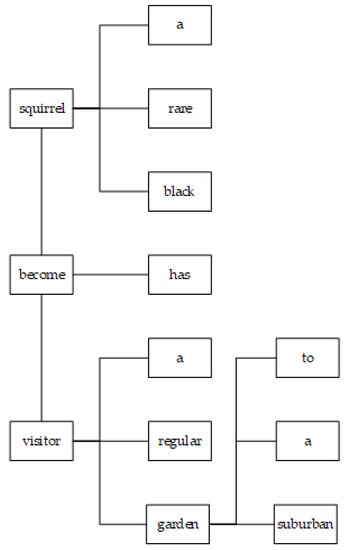 With the above algorithm, the sentence “A rare black squirrel has become a regular visitor to a suburban garden” results in the triplet {squirrel, become, visitor} with attributes found in Figure 1.