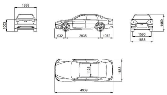 First of all, Quality Function Deployment (QFD) [6,7] is used to define the customer’s requests and the target market segment. Second, a Benchmarking analysis is performed to identify the number of requirements that will allow the product to be innovative. The presented method is an evolution of the past known methodologies, which were analyzed by Sabatier [8], being enhanced by a Top-Flop analysis to scout the number of the main characteristics of the best products on the market, which will set the level that needs to be overcome in order to achieve innovation in the new project. Ford style was initially studied, in particular of the Ford Falcon (1960–1968) and Ford Mondeo (1996–2019) models, to better understand the characteristics of the brand and the main stylistic properties that have been maintained over the decades. The SDE method proceeds with the sketching of a digital version of the vehicle here presented in order to improve the classic freehand drawing. After finding the satisfactory shape (analyzing and discarding the various proposals of the stylistic trends), the proportions and dimensions of the final sketch are evaluated and corrected through two-dimensional drawings—2D CAD—before moving on to the second part of the IDeS, Product Development.