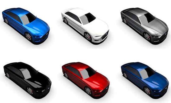 This step begins with the 3D modelling of the vehicle—3D CAD—to obtain the three-dimensional shape of the product. Once the 3D model and all of its functional and aesthetic details are completed, the realistic renderings of the product are displayed before proceeding with prototyping, which can take place physically with the creation of the model of the vehicle with 3D printing, or virtually using Augmented Reality to show the car in any real setting of everyday life. In the presented paper, the authors chose to test both of these technologies in order to set up a comparison that led to a more complete study. The Product Development phase ends with the optimization and redesign of the vehicle according to an aerodynamic study. Applied to the automotive sector, the SDE method [9,10] introduced the ability to digitally sketch the vehicle, which improves the classic freehand drawing of the vehicle. Once the satisfactory shape is found, both a 2D and 3D model are built. After that, a visualization using AR and AM is conducted. The Product Development phase ends with the optimization and redesign of the vehicle according to an aerodynamic study. The choice of segment E was made to take advantage of the lack of models of this specific type by the brand. In car segmentation, which has evolved over time due to market sub-segmentation, as declared by Tartaglia [11], the E segment identifies executive cars, large sedans such as the Mercedes E-Class or the BMW 5 Series, characterized by elegant, luxurious, and at the same time, sporty shapes. In fact, the US car manufacturer has not owned a flagship sports sedan for years, and the goal of the project is the creation of this type of vehicle which, through an attractive design and a strong degree of innovation, will be able to be successful on the market. The Ford brand vehicle that is considered the starting point of this innovative study is the Ford Falcon. Since the number of models proposed by the Ford company is vast (starting from the small Ka; the timeless Fiesta, Focus, and C-Max; the iconic Mustang; the extreme Ford GT, etc.), the car proposed here will be called the Ford Eagle. The name was chosen because it represents the key symbol of the USA—the eagle—an element of strength, courage, and freedom. Moreover, it wants to proudly show an evolution, and not just inspiration, of the historic Falcon model.