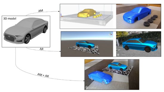 The design of a completely new E segment sedan using of SDE is summarized in Figure 14 with the technologies applied in the case study. It is worth noting that it is possible to build a 3D printed model using FDM technology and to undergo Augmented Reality applications from a single 3D object.