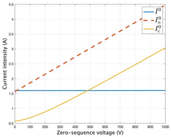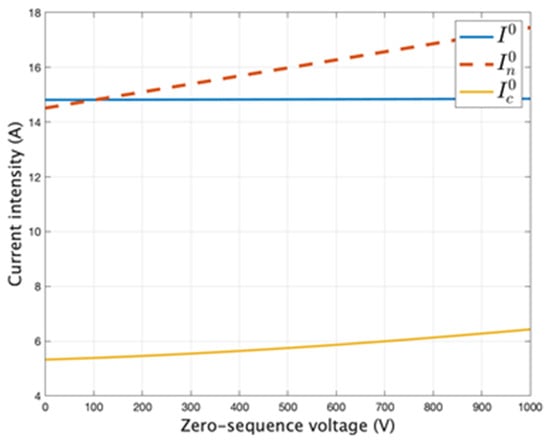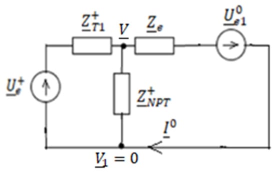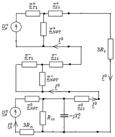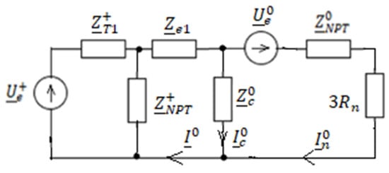 For the calculation of the zero-sequence current, the simplified diagram from Figure 4 is considered.