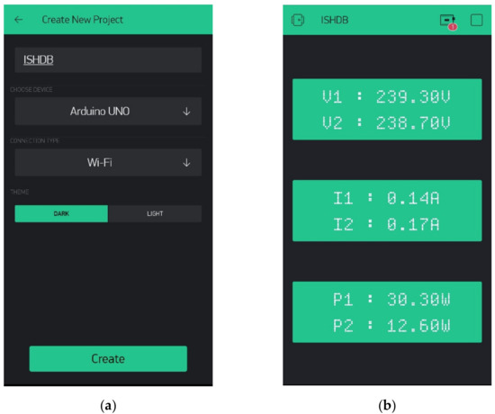 (a) Creating a new project in Blynk apps; (b) Complete visualisation of ISHDB parameters.