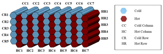 To understand the way that fluid travels through the channels of the HX, a few definitions are required. Consider a cross section of the core of the HX in Figure 1.