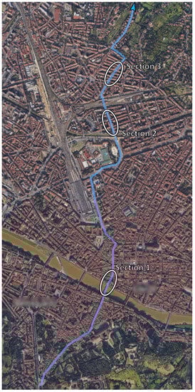 Testing activities are highlighted and commented on, allowing one to obtain behavioural data on e-bike cyclists in certain road sections, as well as results useful in the analysis of accidents with the involvement of both e-bikes and e-scooters. Real road and closed-circuit tests are reported, which refer to a total of six riders, daily users of traditional bikes, equally divided based on their gender and aged between 25 and 55; such a number of subjects is sufficient to extrapolate interesting information in terms of performance and typical behaviours of riders [25]. The subjects were part of the University of Florence, ranging from students and internal personnel. The six subjects volunteered in response to an announcement regarding the testing campaigns and signed an informed consent form. Collected data were anonymized before processing; the period of testing was approximately 10 min for the closed-circuit campaign, and the time of two rides (with and without assistance) for real road tests. The circuit on the real road tests matched the needs of all users in terms of home-to-work trips.