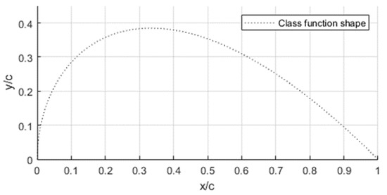 The airfoil given by the class function is a primary airfoil and will be a basis for further airfoils by being multiplied by the value of the shape function. The class function values are shown in Figure 3.