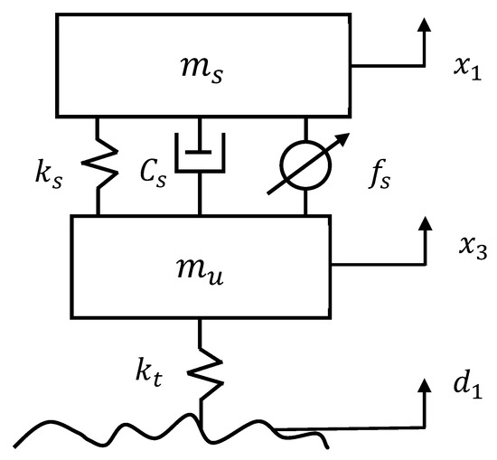 A road vehicle represents a sophisticated vibration system with many degrees of freedom. In general, the vehicle model fidelity increases with the degrees of freedom of the model. However, the analysis burden becomes increasingly heavy while increasing the degrees of freedom. It is rational to simplify the complex vibration system by considering only its major motions. To gain a qualitative insight into the functions of the suspension and, in particular, the effects of the sprung and unsprung mass, spring stiffness, and damping on vehicle vibrations, a linear 2-DOF quarter-car model may be used [26]. With the aforementioned considerations, this study selects the linear 2-DOF quarter-car model to explore the robust controllers for AVSs.