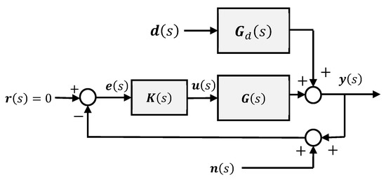 To design the controller for active suspension using the control technique, the vehicle dynamic system is represented as a control structure in the frequency domain as shown in Figure 4. As shown in the figure, represents the reference input, the tracking error, the control input, the external (e.g., road) disturbance, the output, the noise of measurement, and the LSC controller to be devised. We define the output , tracking error , and control input as: