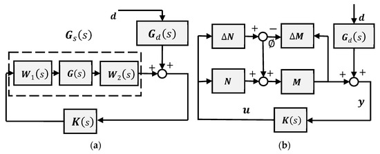 The LSC controller is devised as a robust stabilizer with the left coprime factorized uncertainties and the road disturbance as shown in Figure 7b. Note that considering the introduced perturbations, i.e., and , shown in Figure 7b, the perturbed vehicle system transfer function can be described by: