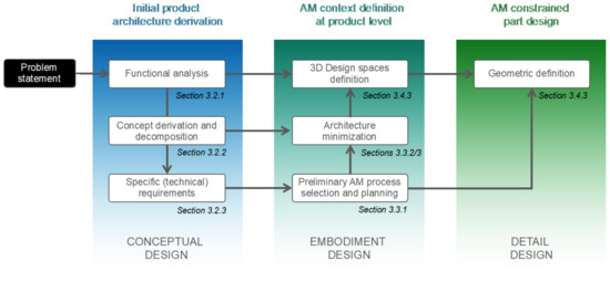 Hence, setting an AM context is based on the initial product architecture (as described in Section 3.2) and it requires knowledge about the specific characteristics of the available AM techniques (as described in Section 2.2). The stage is organized in three steps.