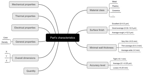 Part characteristics for AM techniques selection.