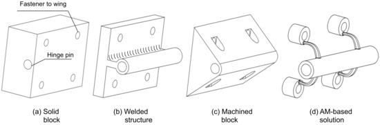 - Yang, S.; Santoro, F.; Zhao, Y.F. Towards a numerical approach of finding candidates for additive manufacturing-enabled part consolidation. J. Mech. Des. 2018, 140, 041701. [Google Scholar] [CrossRef]