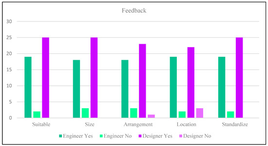 As shown in Figure 10 above, the first feedback part mapped out 4D Printing symbol usage with the following questions: “Are the symbols shown suitable to communicate the information for 4D Printed parts?”. Next, for the second question, participants were asked about the dimension of the 4D Printing symbol “Are the size of the symbols clear?”. In the third question, the participants were asked to “Is the arrangement of the symbols clearly communicated?”. The following question asked participants to give their opinion “ Do you think the location of the symbols inside the technical drawing is suitably placed?”. Finally, the feedback question asked, “Do you think having standardised symbols can help designers and engineers to communicate 4D Printing information?”.