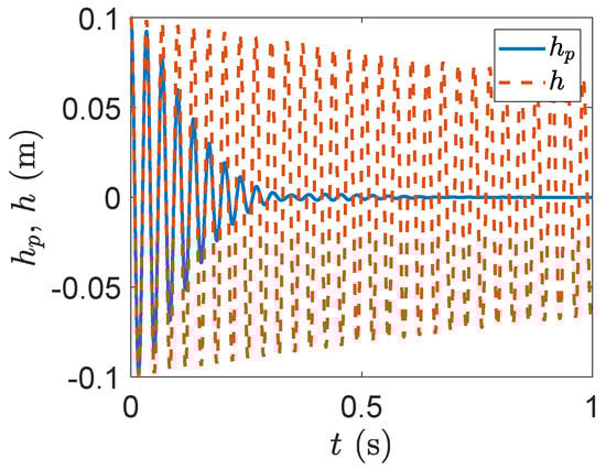 where is the state vector, , is a unit matrix, is a matrix of zeros, is a matrix of zeros, is a matrix of zeros, and is a vector of zeros. The initial conditions are . The initial condition is an excitation whose effect decays exponentially. In order to obtain steady-state solutions, the initial condition is ignored in this paper; therefore, Equation (24) becomes