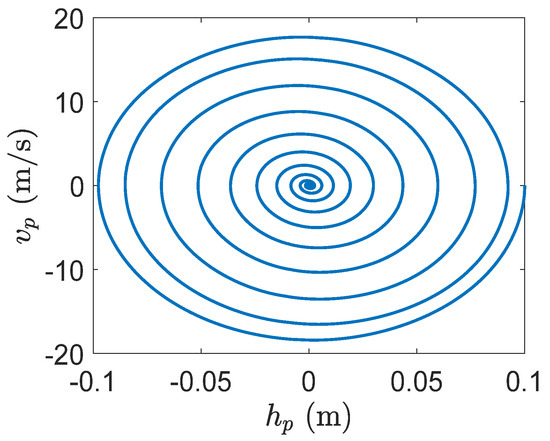 Furthermore, the phase plane plot for the velocity and displacement indicates that the point evokes the system trajectory, as shown in Figure 3. The smart wing trajectory starts from the initial displacement and velocity at the far right and turns to the centre of the phase plane where is the fixed point, . In fact, the phase plane plot shows that the fixed point attracts the smart wing trajectory.
