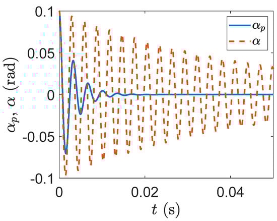 where is the state vector, , is a unit matrix, is a matrix of zeros, is a matrix of zeros, and is a vector of zeros. The initial conditions are . The initial condition is an excitation whose effect decays exponentially. In order to obtain steady-state solutions, the initial condition is ignored in this paper; therefore, Equation (36) becomes