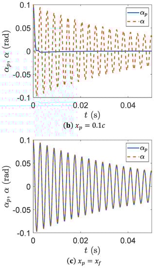 The effects of different values on the system response have been shown in Figure 9. Low values of mean the piezoelectric patch located very close to the leading edge can decay the pitching oscillation quicker than the high-values one.