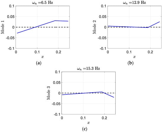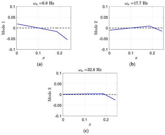 where, in each mode shape, the first element presents plunge displacement, the second indicates pitch angle, and the last element provides control surface angle. Generally, in aeroelastic systems, the degrees of freedom are coupled to each other and cannot occur independently. Mostly, control surface and pitch displacements happen in mode two and three. In contrast to the regular wing, mode one contains significant pitch angle. The piezo-plunge-pitch-wing deformation in the three modes has been depicted in Figure 20. It is clear that there is slight similarity in pitch and control in mode two and three; however, there is significant pitch in mode one.