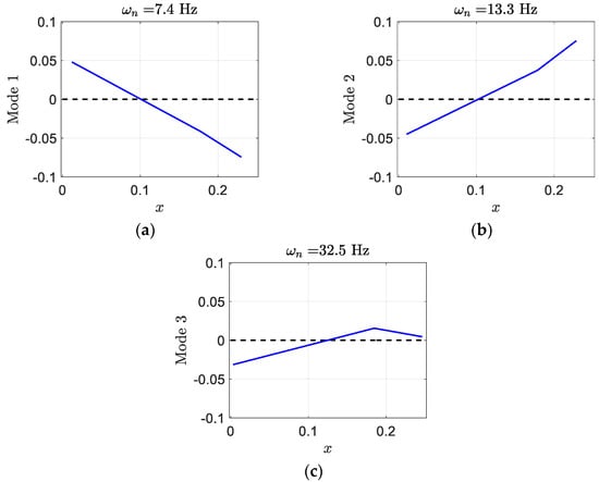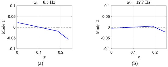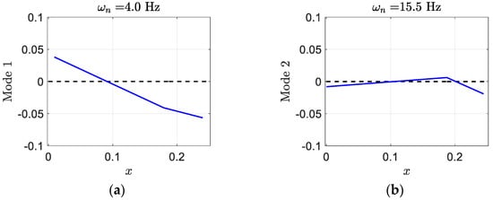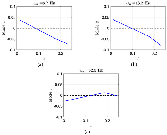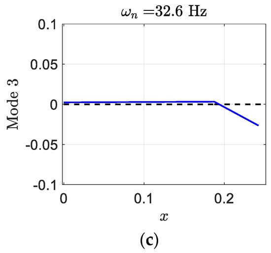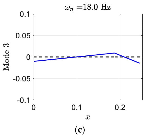where , , , , , , , , , , , , , , , , , , , , , , , , , and are defined as in Equation (28), is the control inductance of piezoelectric material, is the control resistance of piezoelectric material, is the control capacitance of piezoelectric material, is the control electromechanical coupling, and is the control electric charge. The control electromechanical coupling, , depends on the control coupling coefficient, , and the control capacitance, , and it can be calculated by .