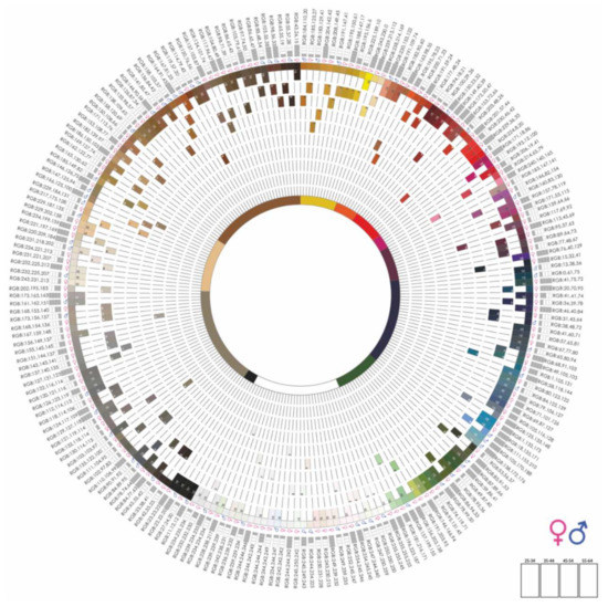 In the inner part of the circle are the simplification of the colors that respondents sent in 12 hues (Figure 6F).
