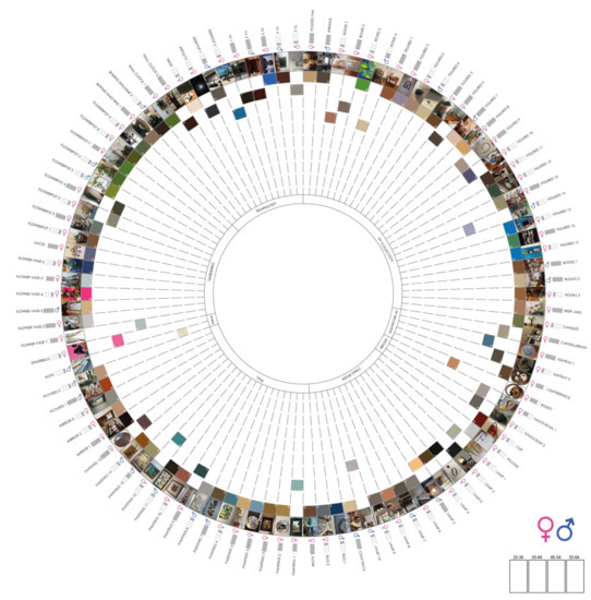 - Jonauskaite, D.; Dael, N.; Chèvre, L.; Althaus, B.; Tremea, A.; Charalambides, L.; Mohr, C. Pink for Girls, Red for Boys, and Blue for Both Genders: Colour Preferences in Children and Adults. Sex Roles 2019, 80, 630–642. [Google Scholar] [CrossRef] [Green Version]