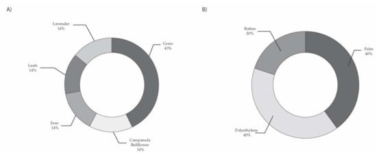 In Figure 18A, we can see that the most common plant among respondents is grass, followed by bluebell. In Figure 18B, we can see that, in the lattice category, the most common textures among respondents are palm, polyethylene and rattan.