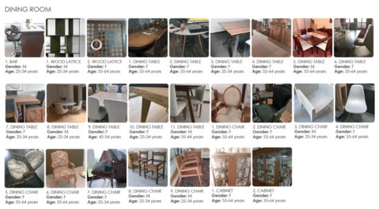 In Figure 21, we can see a selection of images of the dining room furniture and equipment sent by respondents.