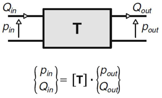 Q. Applying an electro-acoustic analogy where the pressure is equivalent to voltage and the volumetric flow to current, the transfer matrix approach can be considered as the equivalent of the two Kirchhoff’s circuit laws. The interconnection of different blocks can be expressed by a product of the different transfer matrices characterizing the single blocks describing the system (
