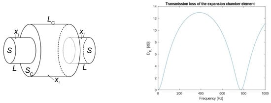 TL is usually determined by the length of the element, while the amount of reduction for an expansion chamber is controlled by the diameter of the expansion chamber. The real silencer system is built up using silencer elements and straight coupling pipes. The minimum distance between two silencer elements is set by the dimensions of the coupling elements (T-couplings, area changes, and muffs).