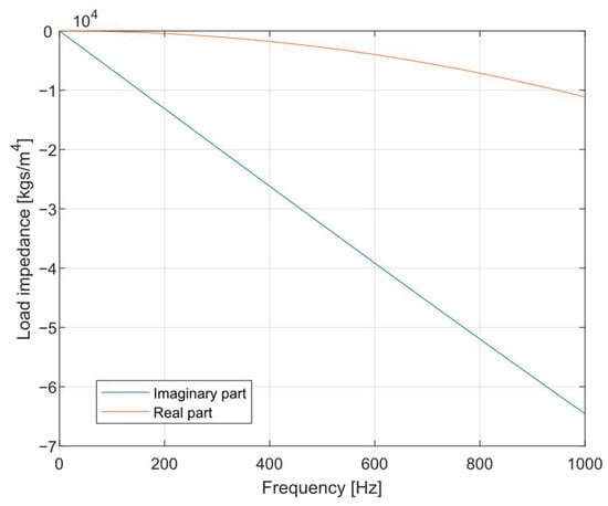 Figure 7 shows the real and imaginary parts of the outlet impedance as a function of frequency for a duct of diameter 45.2 mm.