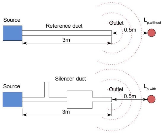 IL is usually the easiest and most common way for evaluating the sound reduction properties of a silencer system. However, this may not be enough to ensure acceptable conditions in some practical situations, such as the assessment of acoustic comfort in indoor environments with mechanical ventilation systems. In such cases, the SPL in a given position must be estimated, which requires the knowledge of quantities such as source impedance, the nature of the ground (reflection coefficient), and the radiation model of the outlet [