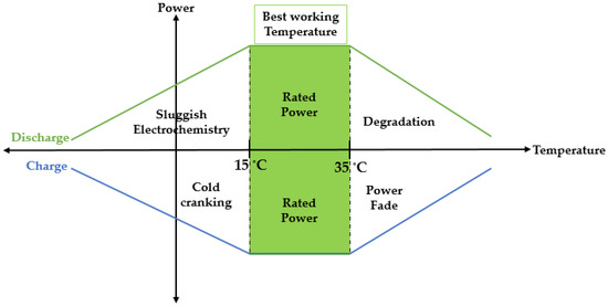 Figure 1 shows that the cell’s operating temperature affects its lifetime, performance, and safety [9]. As is seen, the chemical reaction inside the cell is the leading cause of temperature rise. The reaction rate would be increased with higher power output and capacity at high temperatures [10]. To the best of the author’s knowledge, the number of published works for the TMS design of hybrid ESS mainly LiCs is so limited. Therefore, the lithium-titanate oxide (LTO) battery that is the most similar lithium-ion battery to LiCs is also investigated. In this regard, some advanced TMSs for lithium-ion batteries are presented in this review article.