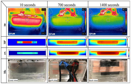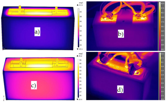 (a) Simulation result for the pure PCM; (b) experimental result for the pure PCM taken by the thermal camera; (c) simulation result for the PCM-Al; (d) experimental result for the PCM-Al taken by the thermal camera [46].